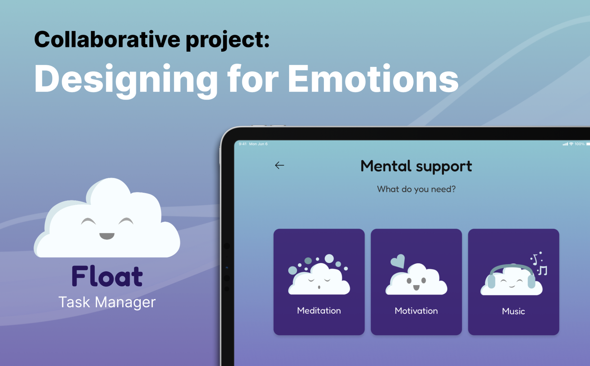 Float is a practical, meaningful digital solution to a common task-management problem. In today's digital age, many people find it more convenient to seek and rely on digital help, especially those individuals that tend to procrastinate and escape from their duties through endless scrolling. This provides short dopamine boosts, but no long term solutions. Our app aims to uplift users' moods initially, offering options such as music, meditation, or motivational speeches, giving valuable mental support during periods of stress, overwhelm, hopelessness, or lack of motivation. It follows by allowing users to effectively organize their tasks by either breaking them down or grouping them together, facilitating a clearer and easier overview of their to-do list. This approach not only saves time and effort, but provides users with a sense of relief before and after they do their tasks.