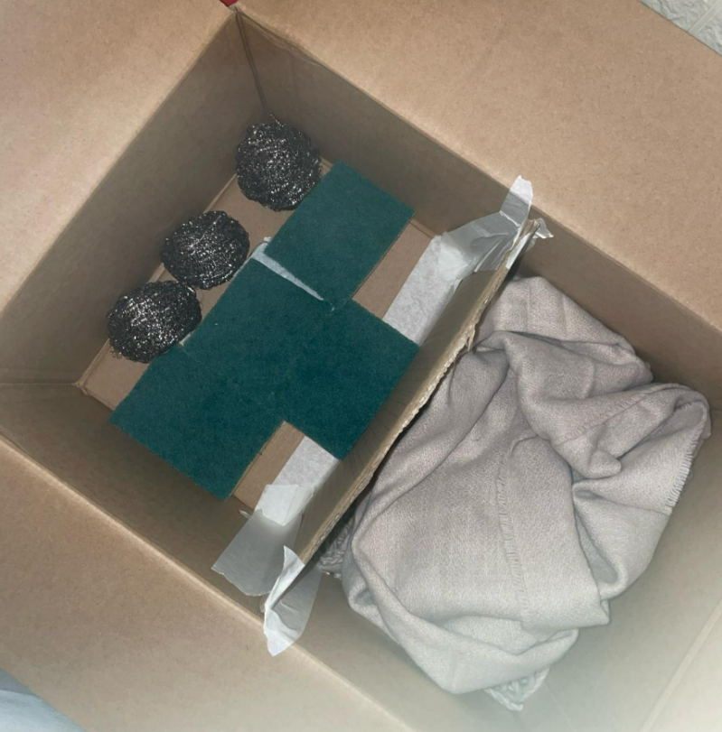 The touchbox has two holes where you can insert your hand; the first one contains rough elements (abrasive sponges), while the second contains a nice soft fabric.
