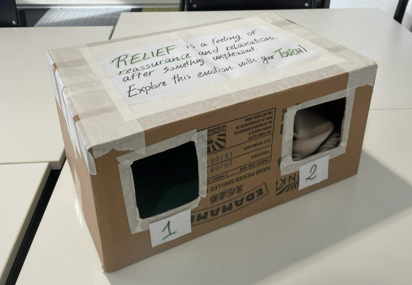 The B test was a leap forward in setting the stage for an emotional response, all while ensuring the safety of the testing environment. By strategically adding in blindfolds thick enough to obscure vision, paired with subtle lighting adjustments and intentional music choices, testers were significantly more immersed in an emotionally charged experience. Moreover, implementing aspects of physical stimulation as relayed within the second exploration, "Touch Box", were critical in elevating the thrill of experience, and furthering the discomfort within the testers by not being able to anticipate what is about to happen, and what it might feel or sound like- creating for an experience with emotional highs and lows that more closely resembles our first exploration, "Emotional Journey", and how we felt finding a new home in the Netherlands.