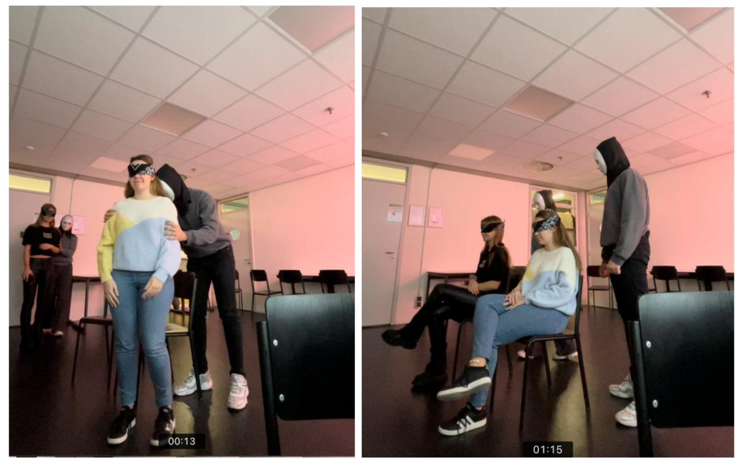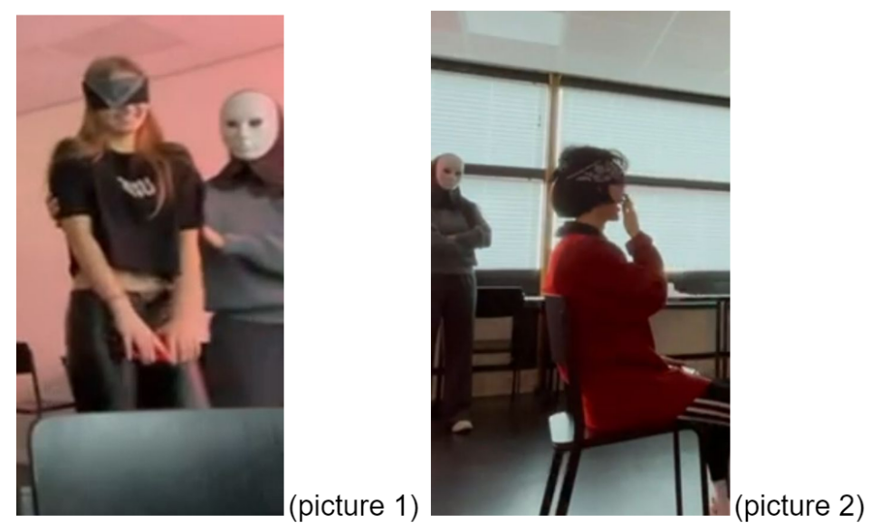 Part 1: Being blindfolded by masked people, led into the room and receiving the instructions (building emotional tension).