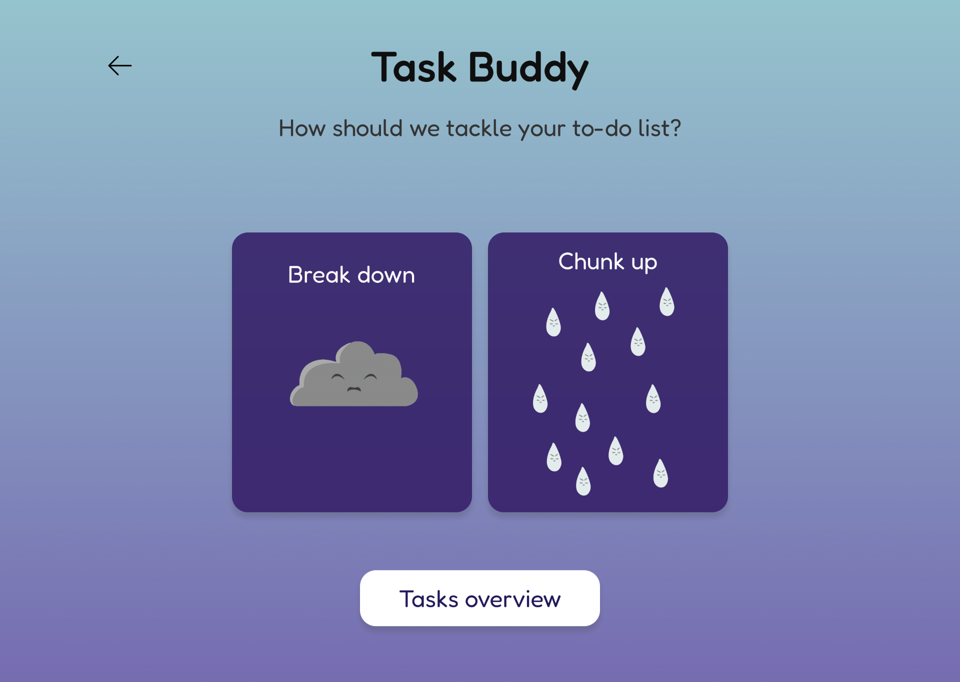 We chose to tackle relief, and tried to use relief to motivate users to complete their tasks, by taking away the overwhelm of starting them.
