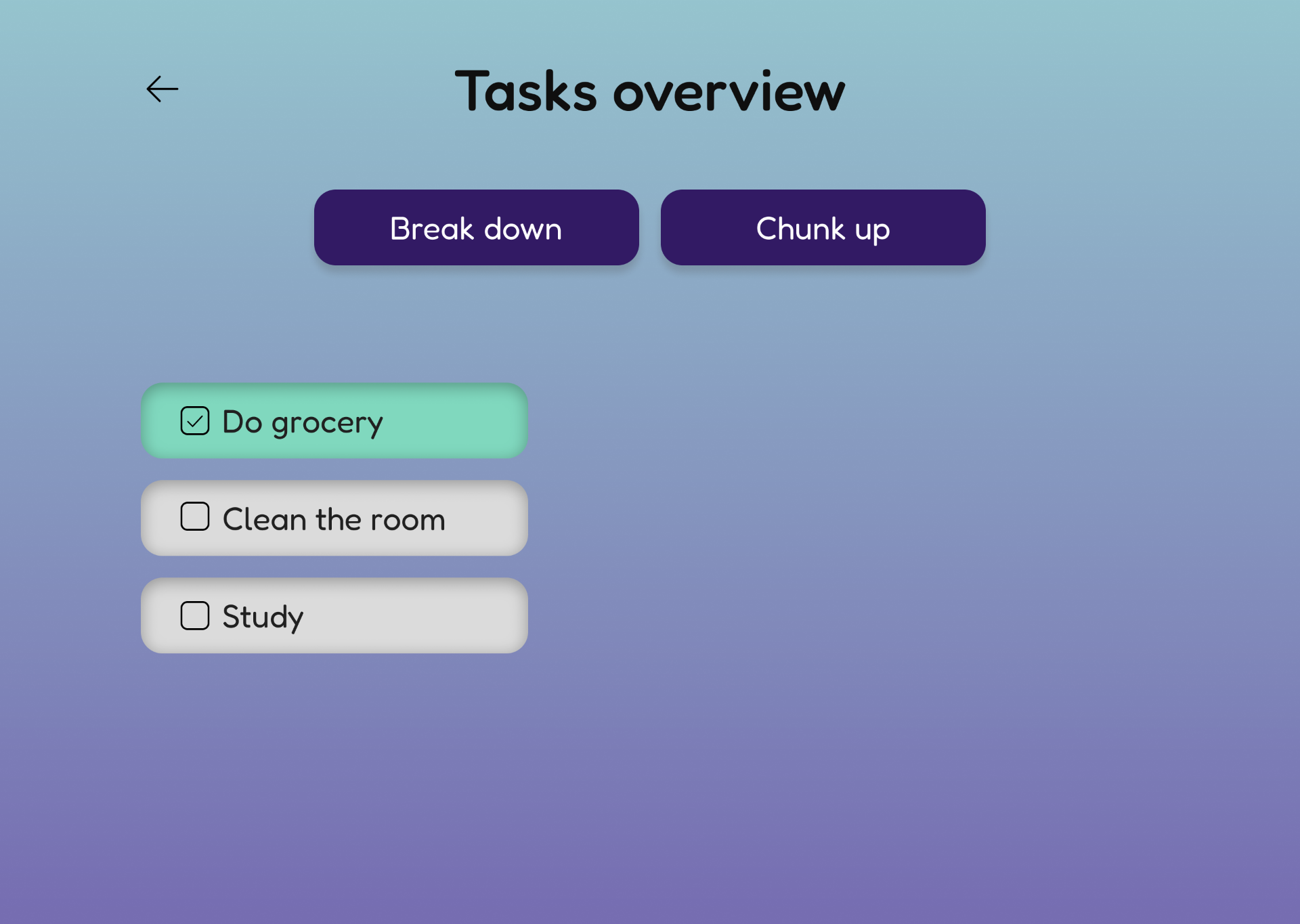 The user can either break down a big overwhelming task into smaller ones, so that it feels more doable and step-oriented.