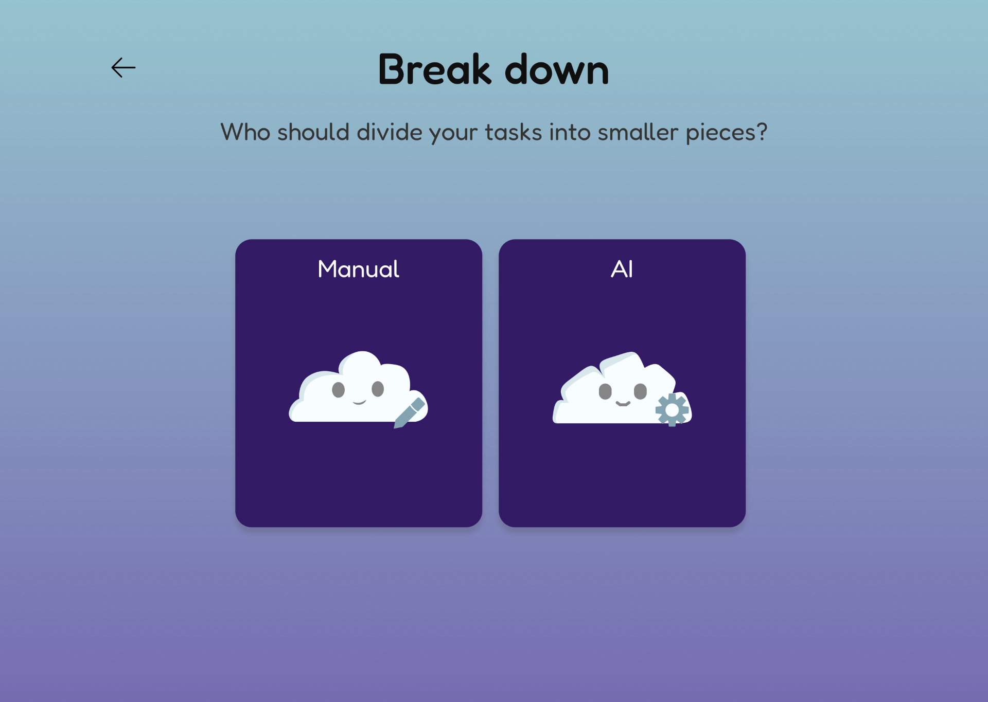 When breaking down, or grouping tasks, you can get help from AI or fill them out manually.